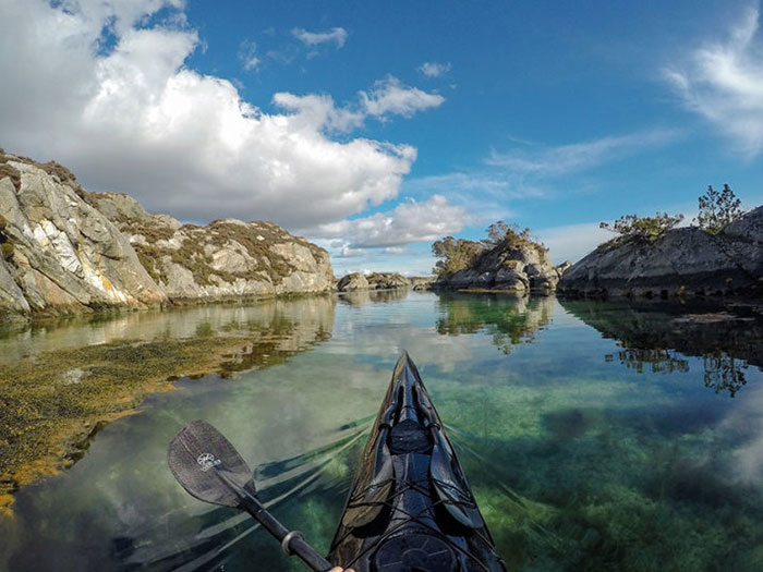 Originally from Poland, Furmanek was captivated by the beauty of Norway ever since moving there at the age of 6. Based in Bergen, the photographer typically takes short trips after work to the fjords near where he lives and goes on longer adventures during the weekends. He uses a helmet-mounted Gopro and a small Sony compact camera on the front of his kayak to take these breathtaking landscapes.