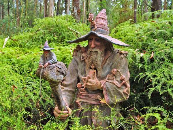In his personal sculpture garden, Australian artist Bruno Torfs crafts wooden figures that live in the forest. Embracing fantasy, his life-sized works feature delightfully unusual characters. We see things like a bearded wizard carrying an armful of tiny creatures and a young princess riding a unicorn. Torfs incorporates the natural landscape into his art, using tree branches and leaves as a part of his subjects' hair or body. After carving, they remain unpainted and blend in with their surroundings. See more, here.