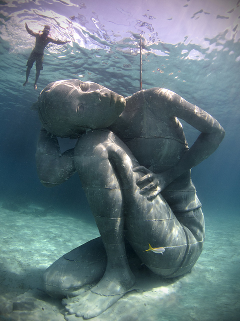 The work is the largest single sculpture ever to be deployed underwater, at 5 meters tall by 4 meters wide (or 16 feet by 13 feet) and 60 tons. It took the artist Jason deCaires Taylor one year to design the and build the beautiful sculpture. It was made in layers and cut from a CNC router, which is computer controlled cutting machine. Assembled underwater in sections, it was deCaires Taylor's most ambitious work to date. See more, here.