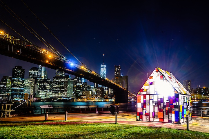 Check out those rainbow reflections! For this year's DUMBO Arts Festival, artist Tom Fruin and performance duo CoreAct presented a collaborative project called Reflection / Kolonihavehus in Brooklyn Bridge Park. Fruin's colorful plexiglass house, called Kolonihavehus, was on display. In previous years, the outdoor sculpture had been shown throughout Europe, such as in Sweden, Denmark, Austria and the Czech Republic. See more, here.
