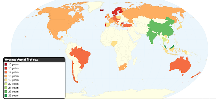 Average Age of First Sexual Intercourse by Country