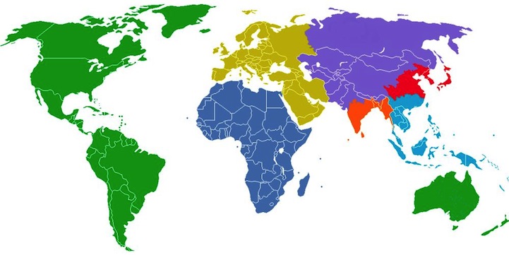 World's Population Evenly Divided into 7 Regions, Each with 1 Billion People