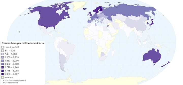 Number of Researchers Per Million Inhabitants by Country
