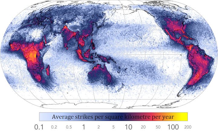 Frequency of Lightning Strikes Around the World