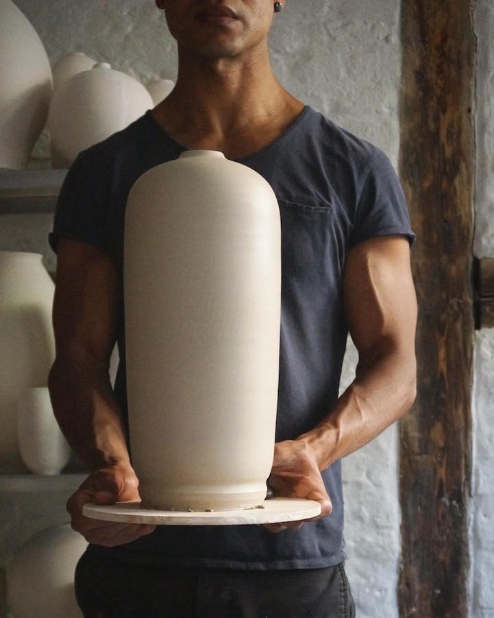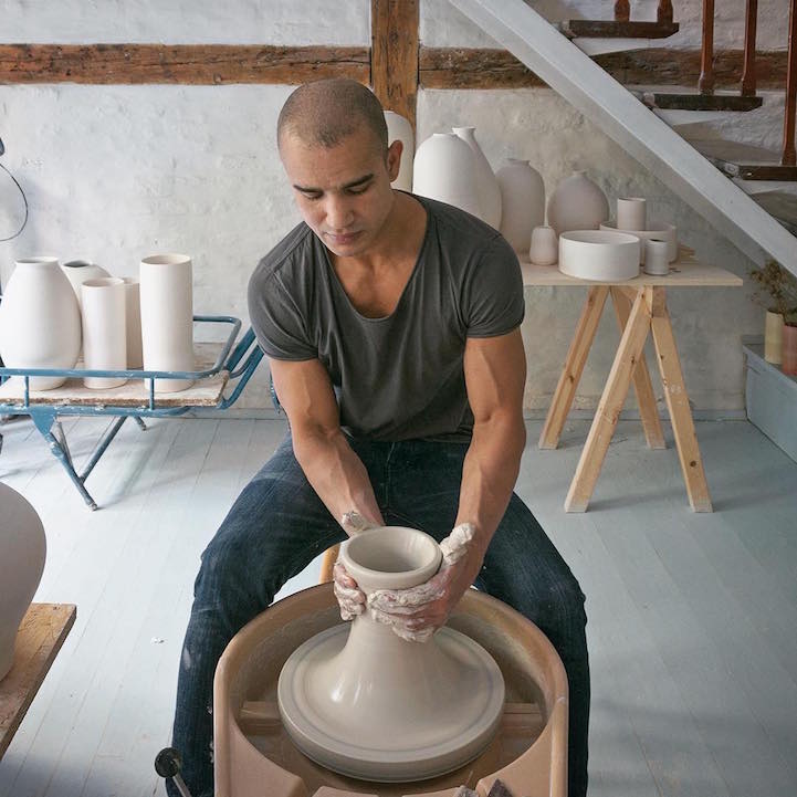 Working under the name Tortus Copenhagen, Landon is eager to showcase and share what he knows. He creates high-speed videos that demonstrate the process of “throwing” from beginning to end. It starts with a lump of clay on a wheel, and then Landon makes tiny, calculated movements to push and pull the material into a variety of shapes. Afterwards, the newly-formed pot is fired in a kiln and has some glaze applied, but Landon refrains from adding any patterning or surface decoration—he lets the elegant form speak for itself.