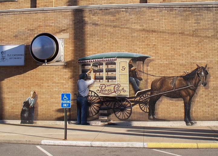 “I am a trompe l'oeil artist focusing primarily on mural painting. I have found that the “language” of life-size illusions allow me to communicate with a very large audience. It seems almost universal that people take delight in being visually tricked. Once captivated by the illusion, the viewer is lured to cross an artistic threshold and thus seduced into exploring the concept of the piece. I have also found that by creating architectural illusion that integrates with the existing environment both optically and aesthetically, the art transcends the “separateness” that public art sometimes produces.” – John Pugh