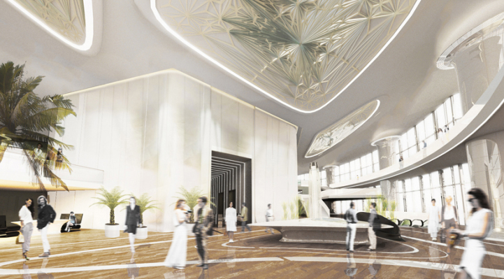 The building, which was designed to offer a multipurpose space that includes high-end offices, apartments, a club, and two floors of underground parking, is one of three structures that are part of the “Trinity” master-plan. Accompanying the sky-scrapper in this ambitious project will be a 5-star hotel and a Ring of Life sculpture found at the south end of the development.