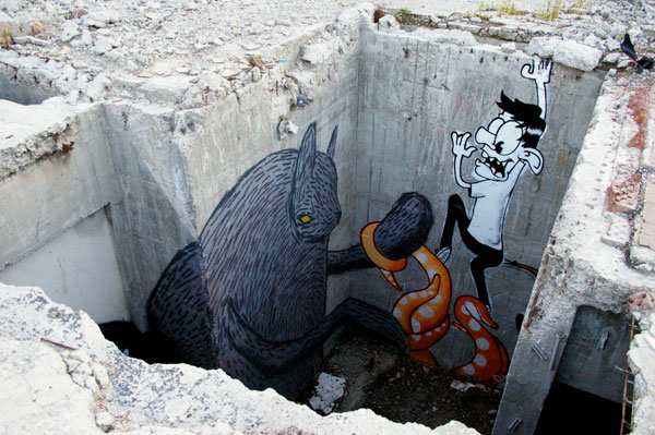 The thing that stands out most to me about Ghostpatrol's street graffiti is how each of his pieces are so remarkably different and original. Incredibly innovative and driven by creative impulses, Ghostpatrol has been described as dark, moody, energetic and passionate. A self taught illustrator who currently resides in Melbourne, Australia, GP specializes in fine ink drawing, graffiti, commissioned murals and soft sculpture. Here are some of his best street pieces.