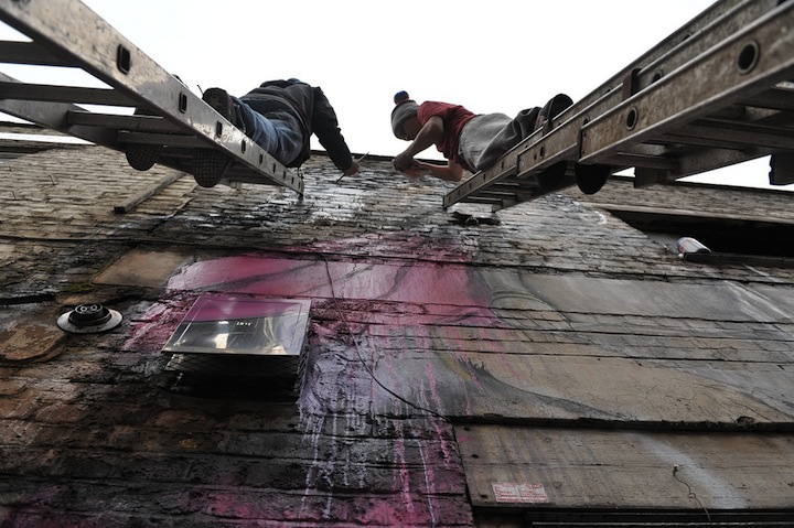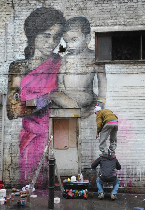 This street mural by Ben Slow and Ma o Shishu was recently completed on the streets of London. The piece is a beautiful illustration about human nature, and the intimate relationship between a mother and her child.