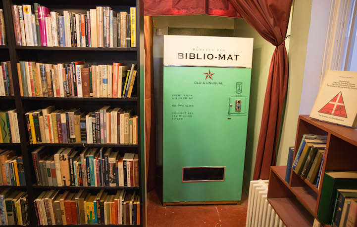 Just a few months ago, I had the pleasure of visiting Toronto and strolled right into The Monkey's Paw, an “antiquarian shop specializing in uncommon books and paper artifacts from the age of print.” Upon entering, I was immediately drawn to this beautiful, vintage-looking vending machine. I was pleasantly surprised to find out that it sold random books for only $2. Named the “Biblio-Mat,” it's the world's first randomizing vending machine for old books.