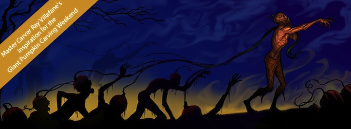 Over this past weekend, master pumpkin sculptor Ray Villafane and his talented team of carvers were hard at work, transforming three of the largest pumpkins grown in the United States into a crazy sculptural display of zombies and other unearthly creatures. The largest one they carved into weighed an astounding 1,872 pounds. According to Villafane, they were going to use this year's world record holder but “it sprung a leak.”