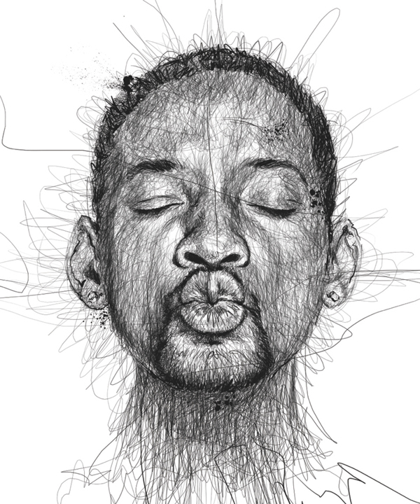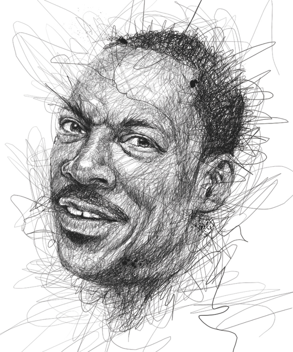 Malaysia-based illustrator Vince Low uses a playful scribbling technique to produce his energetic black and white portraits. He first discovered his lively process while doodling in his sketchbook. He realized that his notes were actually the path towards worthwhile final products.