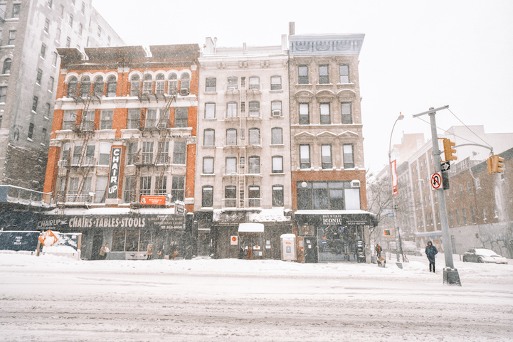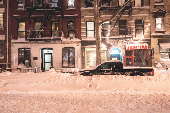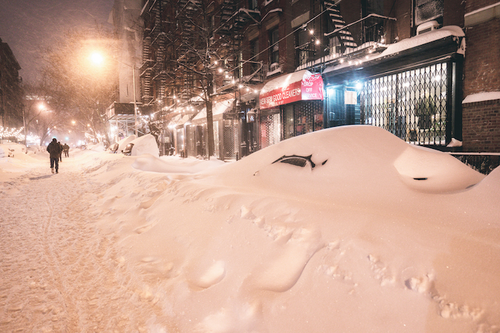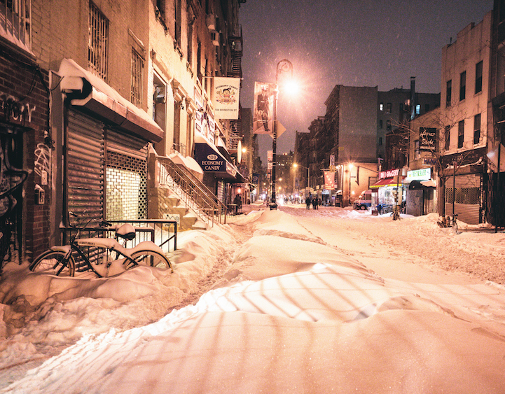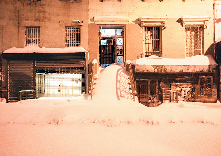 While snow fell during the day, Gucwa headed onto the streets of her Lower East Side neighborhood to document the action. This included the rapidly-falling snow and increasingly-buried cars as the streets and sidewalks became indistinguishable from one another. Each of her photographs has a fantastical, otherworldly feel to it, with familiar sights now blanketed in countless white flakes.
