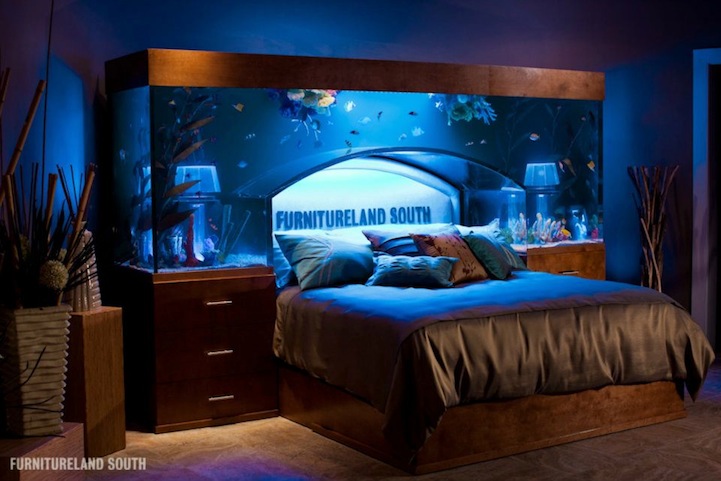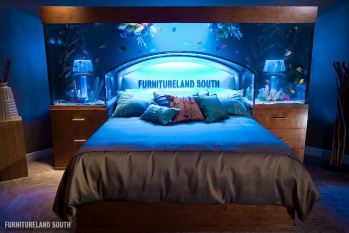 Aquariums don't only serve as aquatic museum attractions for educational purposes. They're also designed to transport the soothing sea into our hectic, land-dwelling lives. Designers are always looking for unique ways to incorporate them into the home, as we've seen with the aquarium sink. Now, it seems Wayde King and Brett Raymer, stars of Animal Planet's Tanked and co-owners of Acrylic Tank Manufacturing, have found a new way to add an attractive aquarium to the bedroom in the form of a headboard.