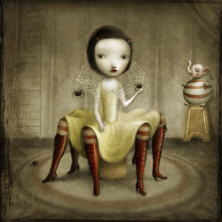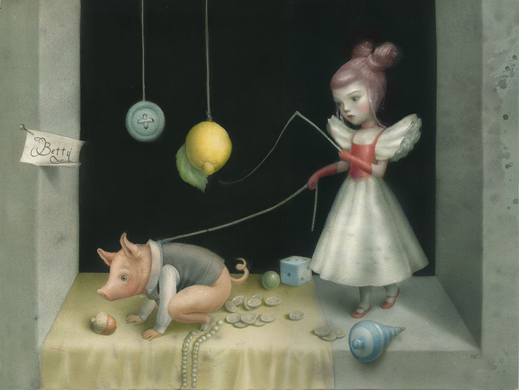 Welcome to the soft and surreal world of Nicoletta Ceccoli. We just received an email from the CoproGallery letting us know about the web preview to Nicoletta's show. Starting November 7th, 2009, the CoproGallery will present Nicoletta Ceccoli's, “Babes in Toyland.” The show will take you to “a land where classic fairy tales meet 16th Century Flemish paintings, a place where Snow White and Alice in Wonderland-like doll-girls and their toys live amongst a magical forest of lollipops and candy.”