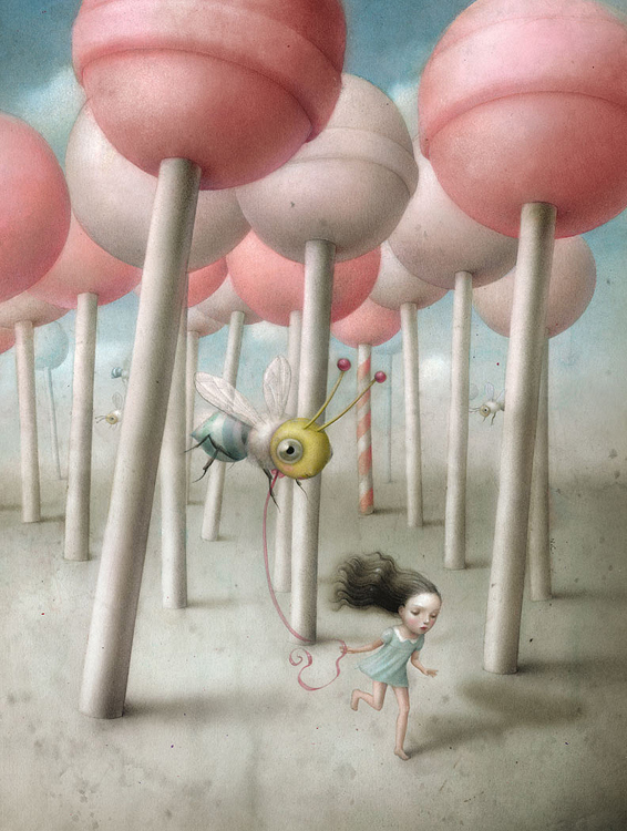 Love how Nicoletta manages to keep the color palette soft while expressing a subtly dark side to surreal pop art.