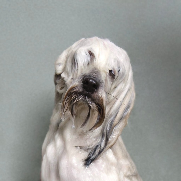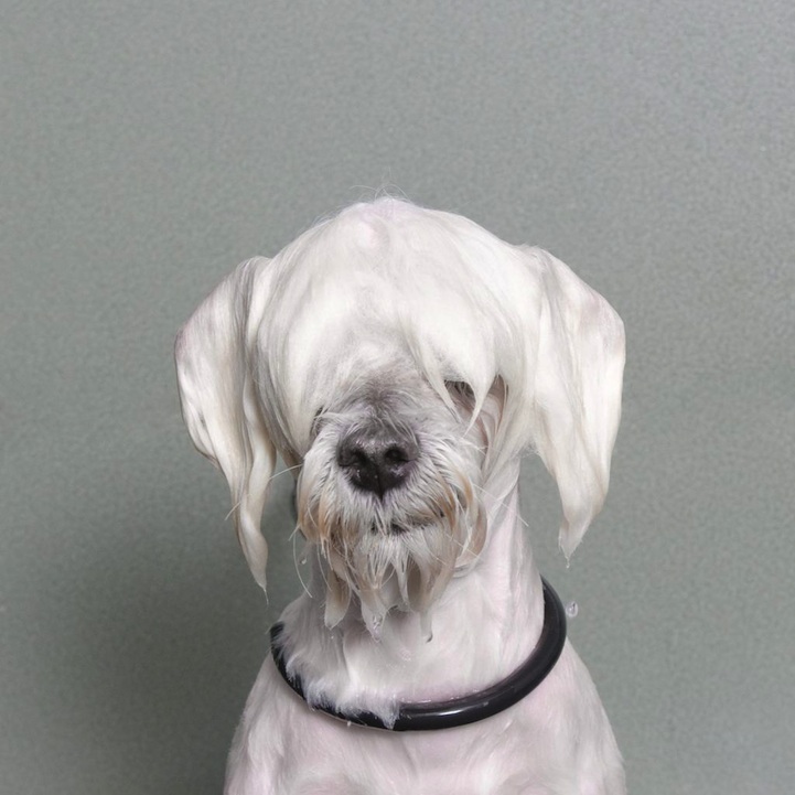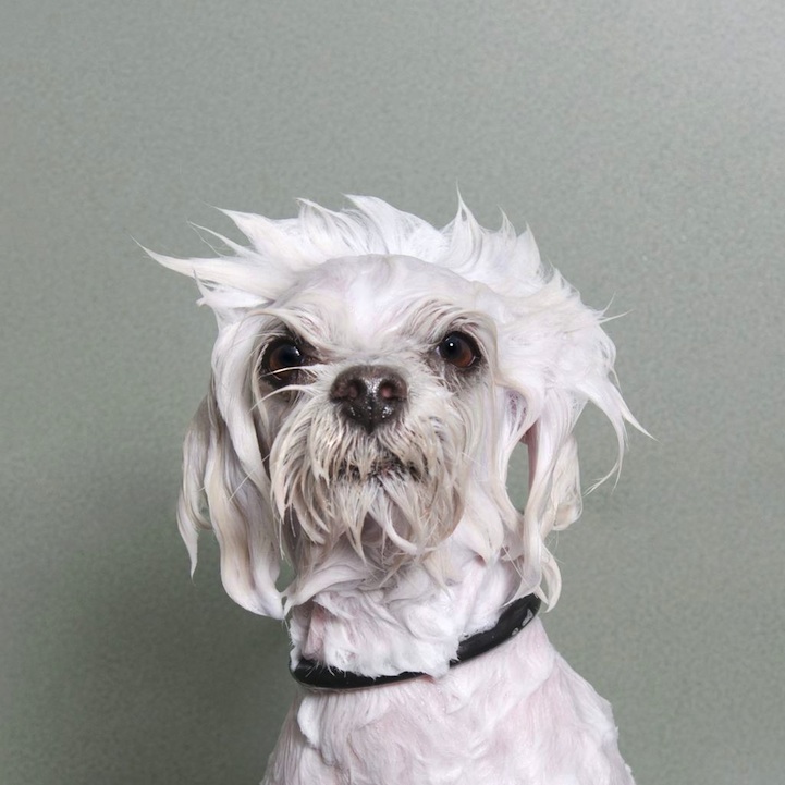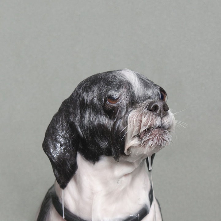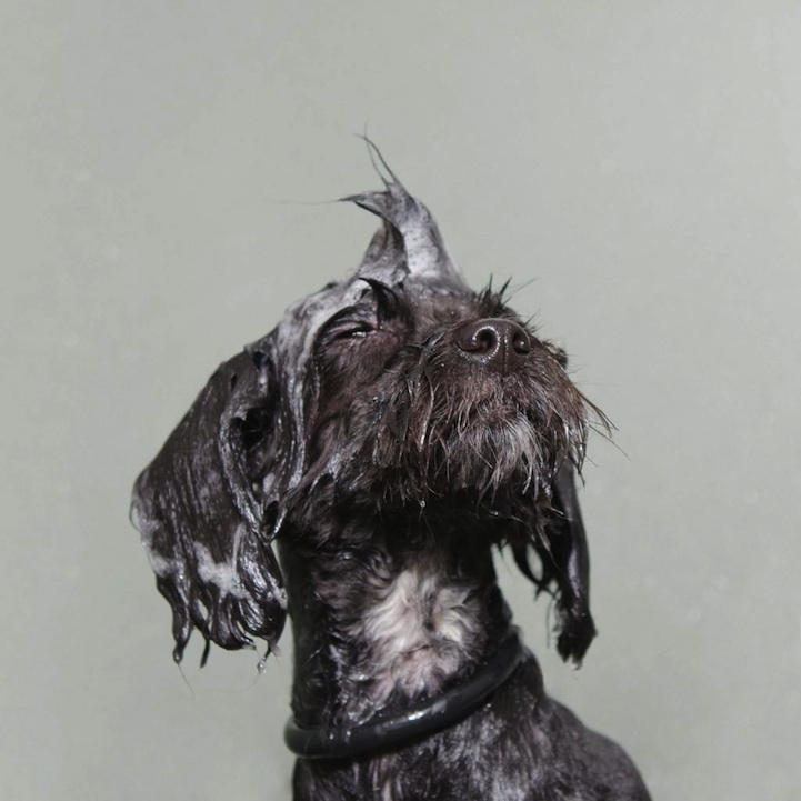 When we asked Gamand to tell us what she learned about dogs and humans from this series, she replied, “The thing that surprised me was the reaction of a handful of people who thought this looks like we were abusing the dogs! I did this series with the help or a professional groomer, in the safety of his shop, so I can ensure everyone that no dog was harm during the process. Well, unless you think that feeling clean and smelling good is a bad thing! Most people see this series for what it is: a fun celebration of the things we do with our doggies that make our relationship so special. It is a necessity for these dogs to be washed and groomed. Otherwise they can get diseases or infections.”