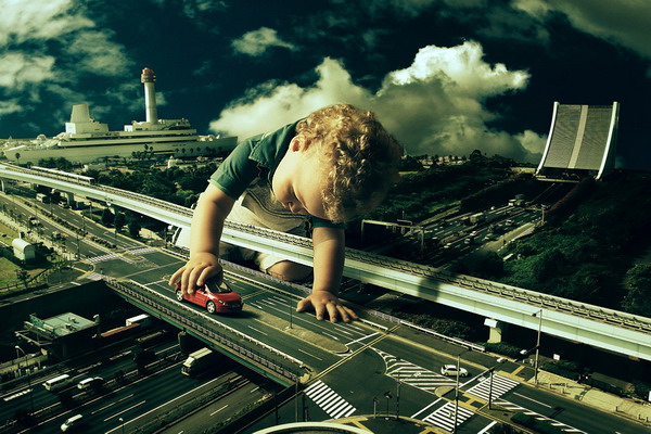 A long, long time ago, giant children ruled the city. A force to be reckoned with, these gigantic cuties recklessly used the world as their playground. Picking up cars, and doing cartwheels in the streets, they threw temper tantrums causing many people to suffer. Here are some photos from Dmitriy Sklyarenko of Fafastudio that document that shocking scene.