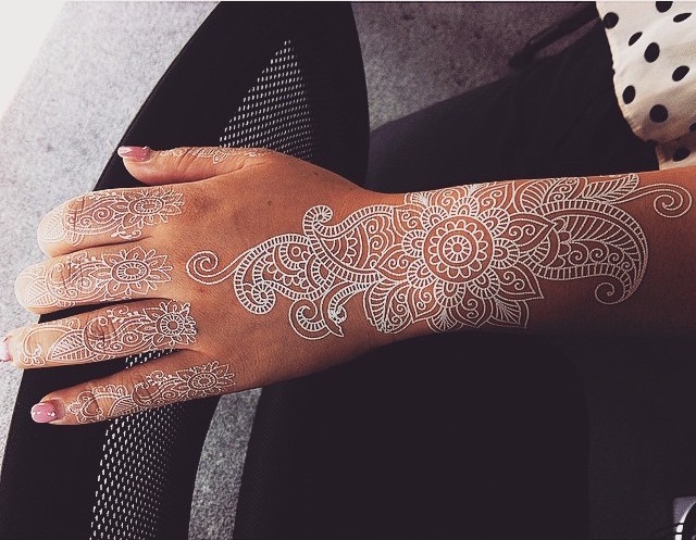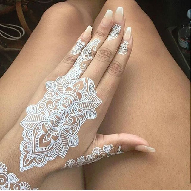 While some people take the plunge and adorn themselves with permanent tattoos, many others like to know that their body art isn't forever. We've featured stunning temporary tattoos before, such as vintage florals and metallic patterns, and now these henna-inspired designs have caught our eye. The gorgeous mandalas, with their elegant flourishes and fine details have a unique twist–they're made with white ink rather than the brown pigment we're used to seeing. This color-change gives them the look of lace draped over the skin.