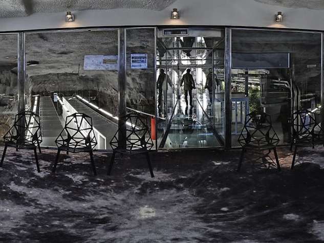 While on the run from Swedish and American authorities, Wikileaks founder Julian Assange hides 250,000 secret cables in this vast cave, drilled into granite under the White Mountains of Stockholm, Sweden. Wikileaks' secret headquarters is located 100ft below ground in a former Cold War nuclear bunker and is complete with a floating conference room, suspended glass corridors, lunar landscape flooring, designer furniture, and German U-boat engines as back-up generators.