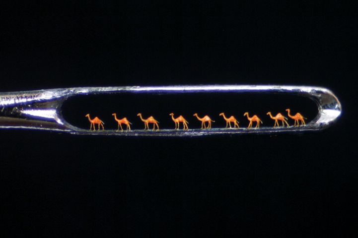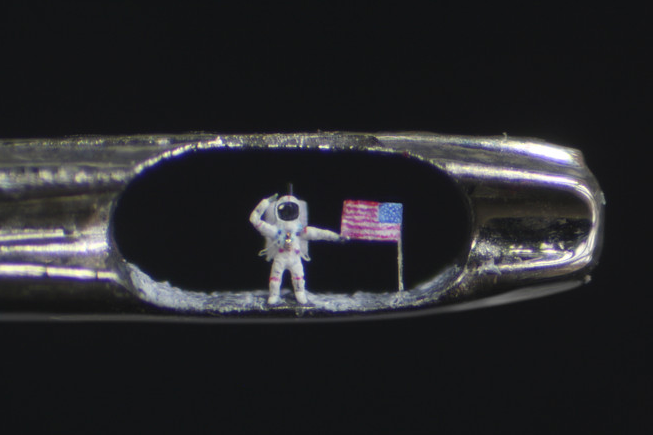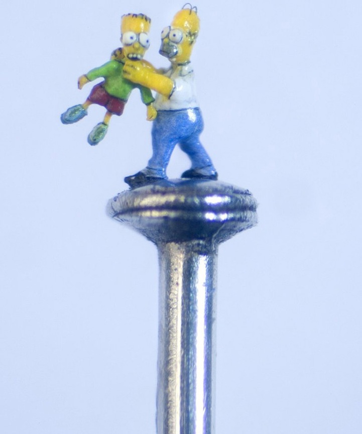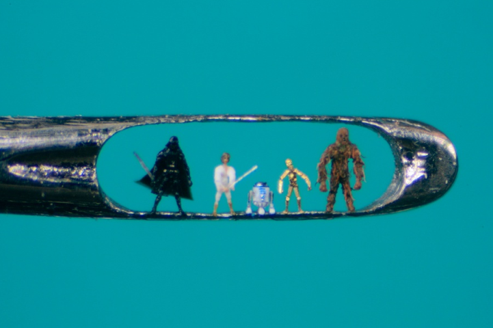 You'll need a magnifying glass or superhero vision to check out these miniature works of art by England-based micro-sculptor Willard Wigan. All of his sculptures are displayed on the head of a pin, the tip of an eyelash, or a grain of sand. He uses materials such as toothpicks, sugar crystals, and grains of rice to carve and paint his sculptures and the smallest sculpture can be measured in thousandths of an inch.