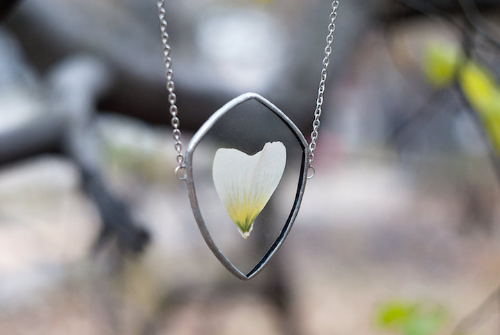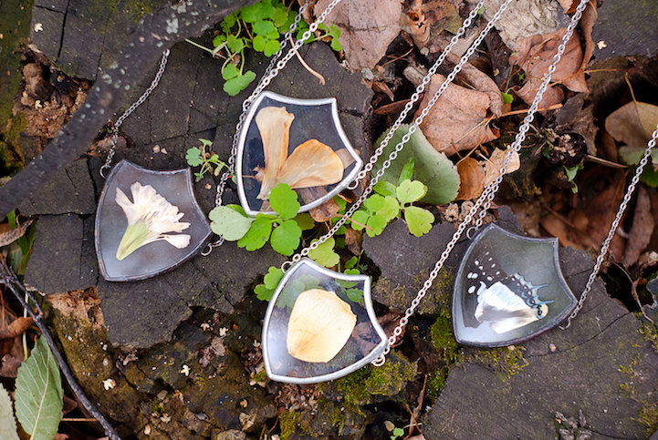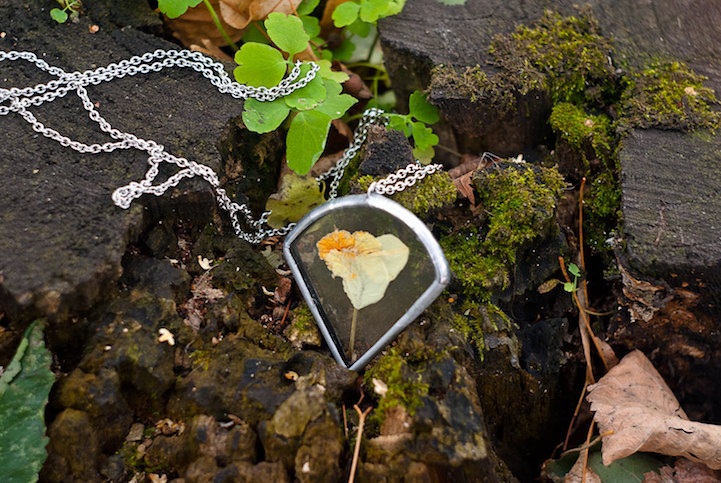 Jewelry designer Stanislava Korobkova encases the delicate beauty of nature in vintage-style pendants. To do this, the Dublin-based creative ventures outdoors to pick tiny leaves and flowers, pressing them flat in order to preserve their fine details. Afterwards, she places the dried materials between glass and seals them with metal, using the same technique you'd find on a Tiffany lamp. The long necklaces are an exquisite and fashionable way to incorporate the forest into your everyday dress.