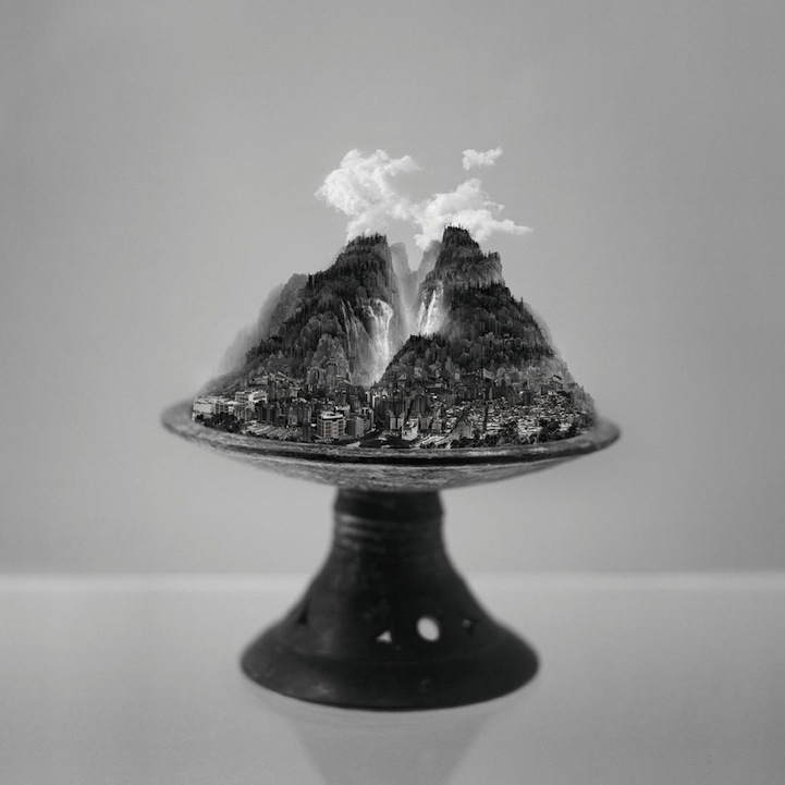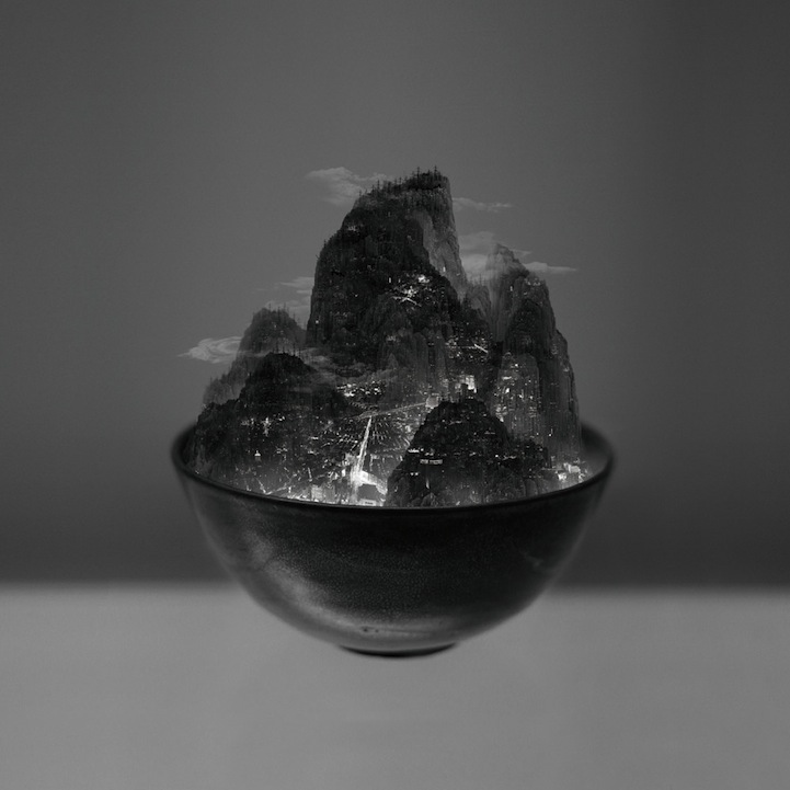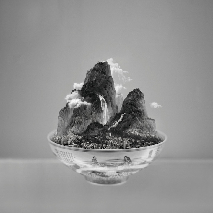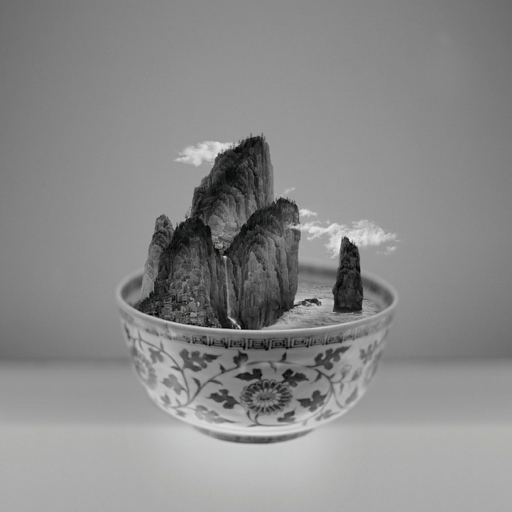 With these ideas in mind, Yongliang recently created A Bowl of Taipei, in which he blends layers of photography into surreal compositions. Through digital manipulation, the artist built stunning landscapes in which, when viewed closely, the modern world of Taipei is revealed. Yongliang juxtaposes this contemporary life by setting it within bowls that are considered some of the earliest known Chinese Jingdezhen porcelain. The series visually represents the past, the present, and the future of Chinese art and there is a calm and serene beauty within each landscape as waterfalls cascade down mountains, clouds fill the sky overhead, and buildings illuminate as nighttime falls.