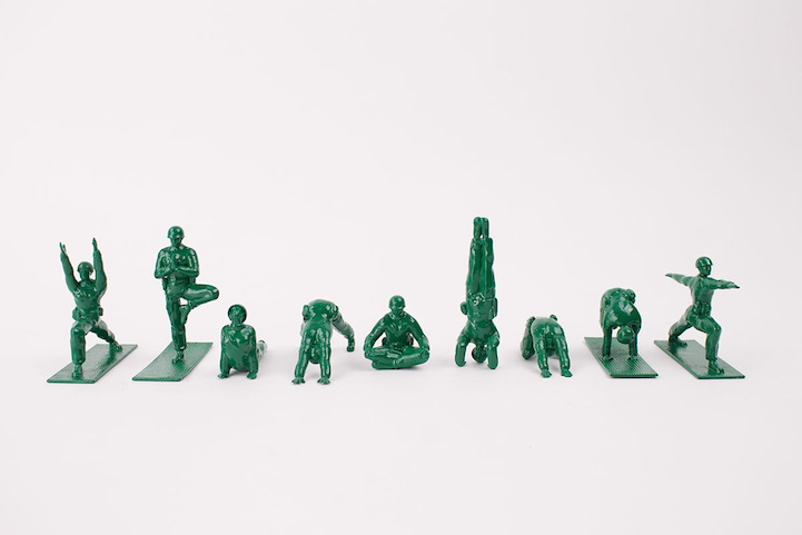 When you see a G.I. Joe toy figure, would you expect that he'd be in the middle of a yoga pose? Probably not. But now, with creator Dan Abramson's Yoga Joes, the small green men are completing moves like the downward-facing dog, child's pose, and even the crow. They look similar to the plastic figures that hold guns, but instead they're now working their body and mind.