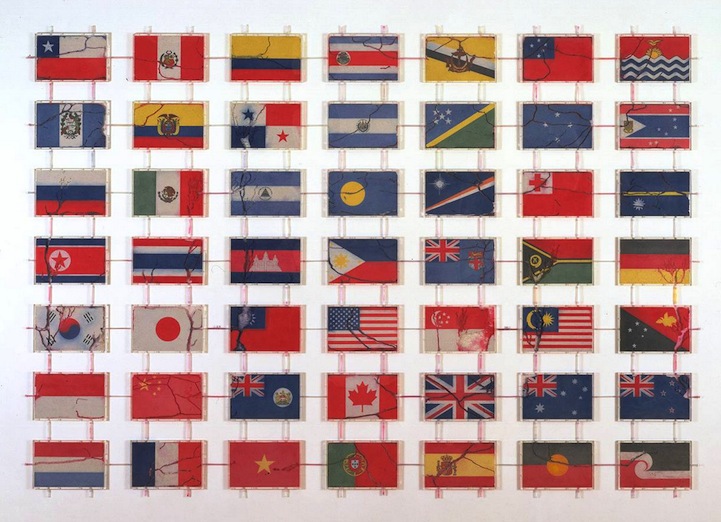 Across the course of his career, Japanese artist Yukinori Yanagi has found ways to collaborate with the tiny little world of ants in his artwork. In The World Flag Ant Farm, Yanagi created a series of world flags by pouring colorful sand into a labyrinth of plexiglass boxes connected by tubes. He then introduced live ants into the art farm and let them go about their daily lives. In the process of tunneling through the sand, the ants created cracks in the flags and mixed the colors of each country's identifying design, resulting in their very own version of the United Nations.