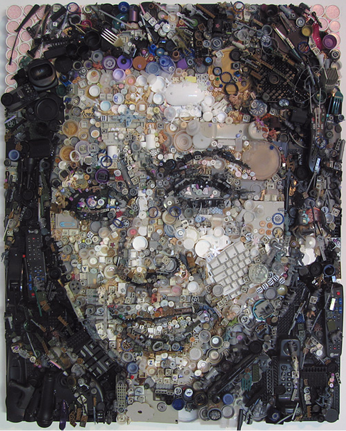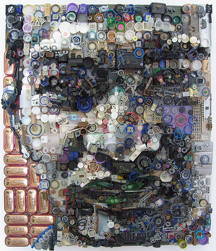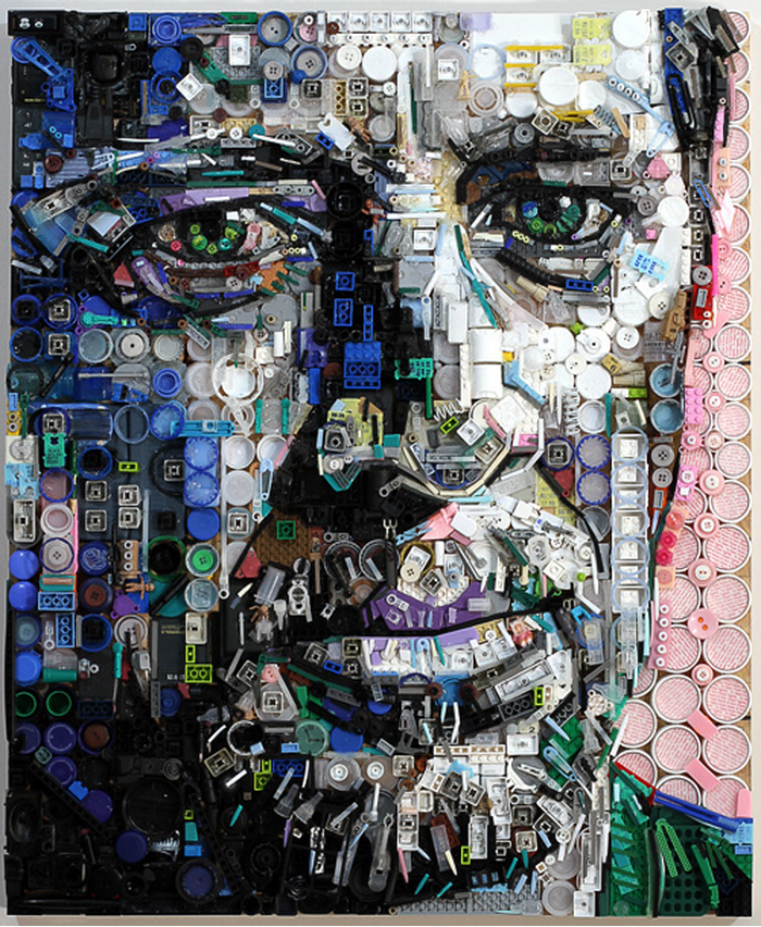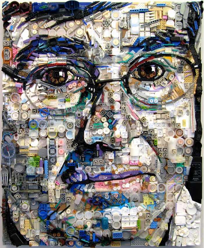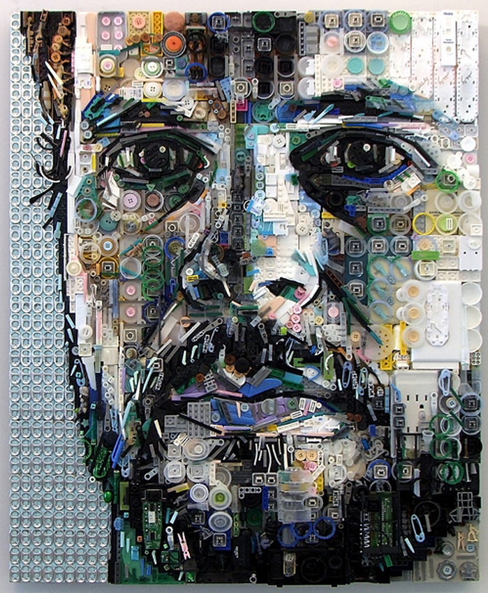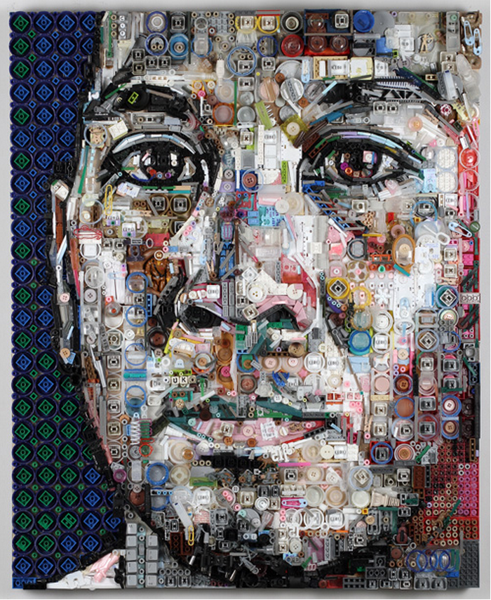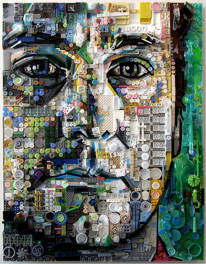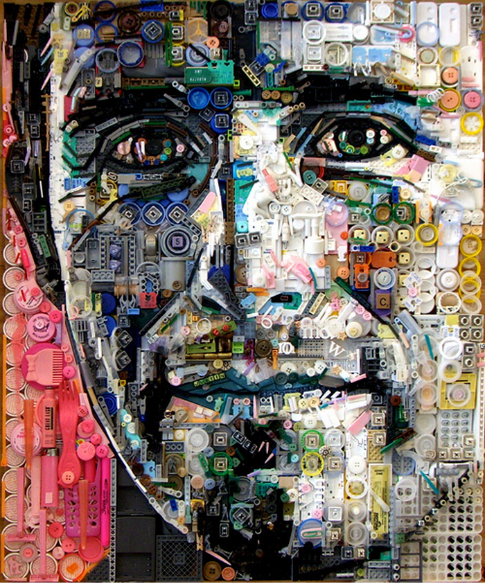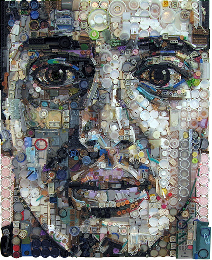 If you like this idea of making portraits out of junk, check out French artist Bernard Pras and his paintings formed out of discarded materials.