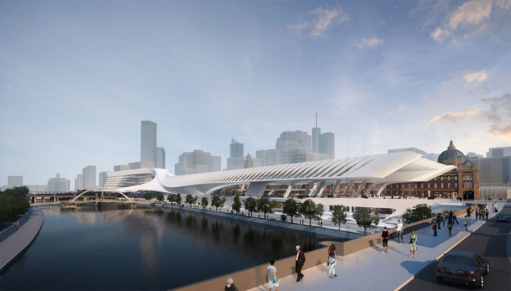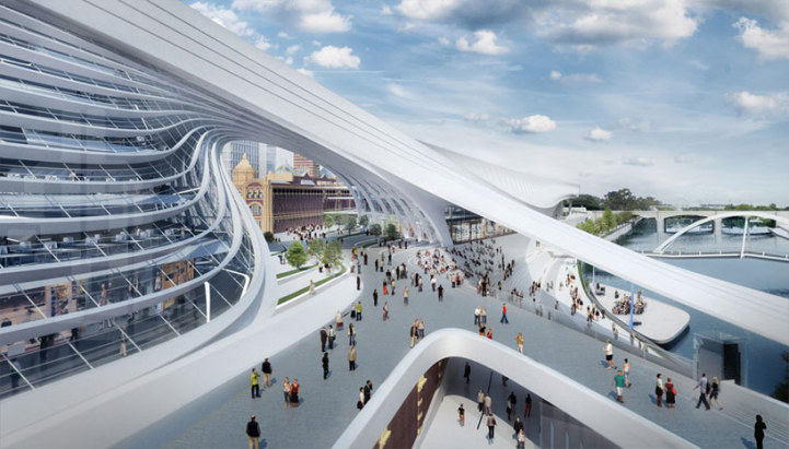 World-renowned architect Zaha Hadid is working on a joint proposal with Brisbane-based firm Donovan Hill for Melbourne's Flinders St. Station competition. The design concept for the proposal is a modern elongated form that also pays tribute to the building's historic past. Hadid's main goal with this project is to create not only a train station but a multipurpose transportation center that will serve as a landmark for Melbourne's skyline.