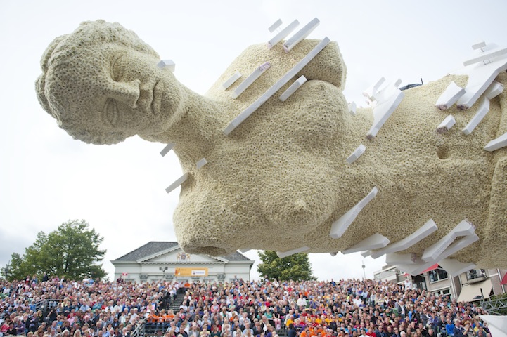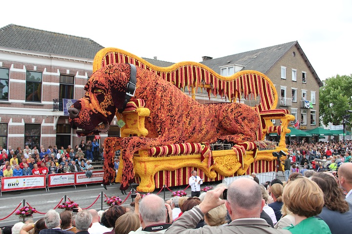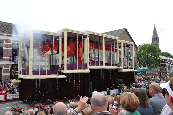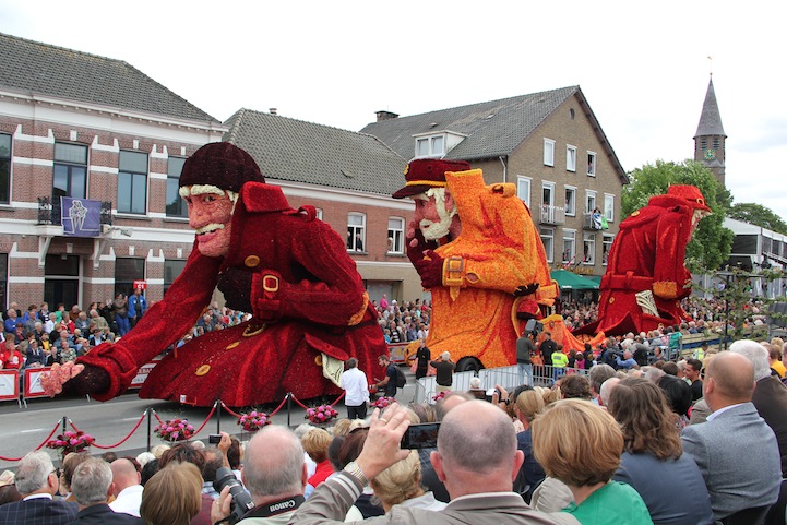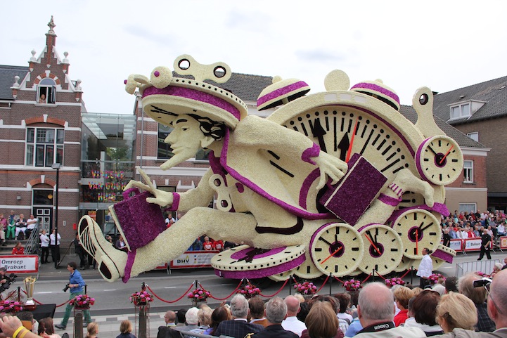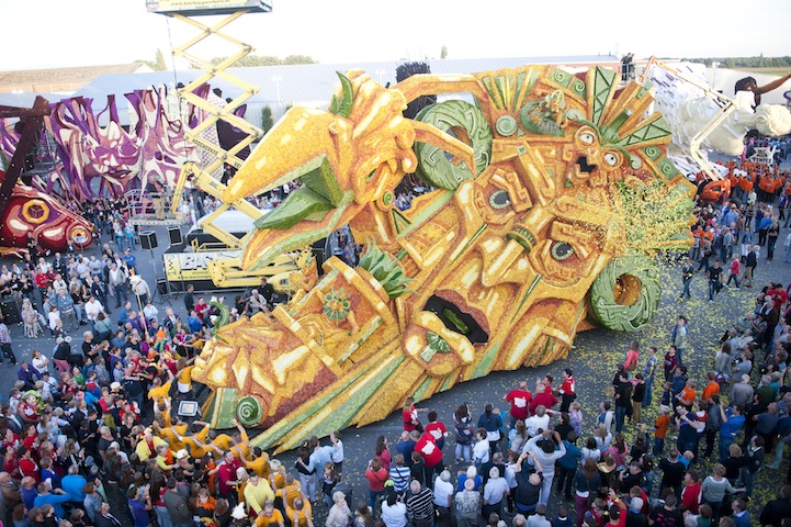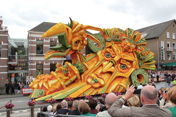 This year, we saw everything from MC Escher and Monet inspired floats to one featuring, wait a minute, flashers! The first place winner was called Crazy Gold (or Gekkengoud) and it was by Laer-Akkermolen. Float designers Steven van Erck and Stefan van Steen created this gargantuan wonder about the Aztec ruler that had himself gilded. The Spanish believed that whoever looked at him would slowly become mad. Oro Loco they called it or “maddening gold”. You can watch the huge flower sculpture move through the streets, here.