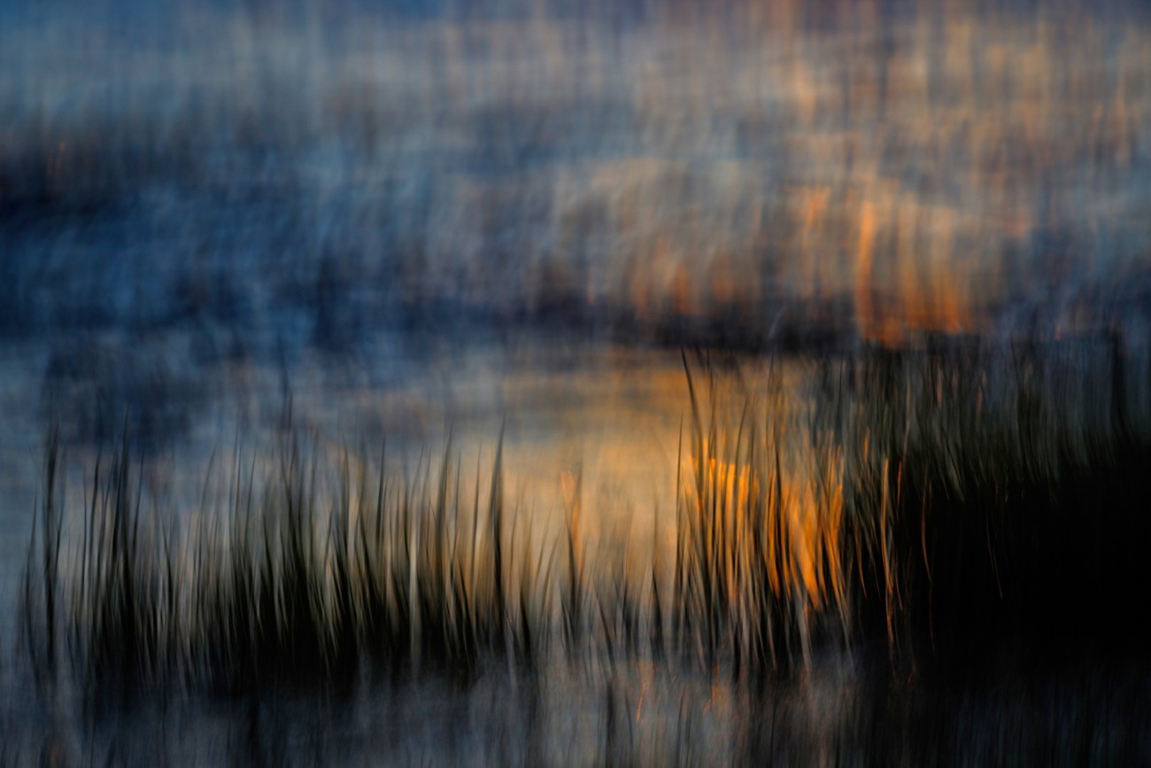 “Long-exposure photography unifies the movements of the waves, reeds, and camera into an abstract image (Bornholm).”