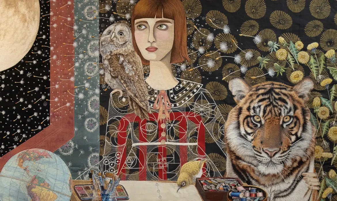 Painting is often thought of as being done with pigment, like acrylics and oils. But that’s not the case for Chris Roberts-Antieau. As a pioneer of machine embroidery and its possibilities, she refers to her primary body of work as “thread paintings,” using thread and fabric appliqué to create her complex compositions. They range in subject matter, from unbelievable true stories to her personal reflections on nature, reality, truth, and perception.
