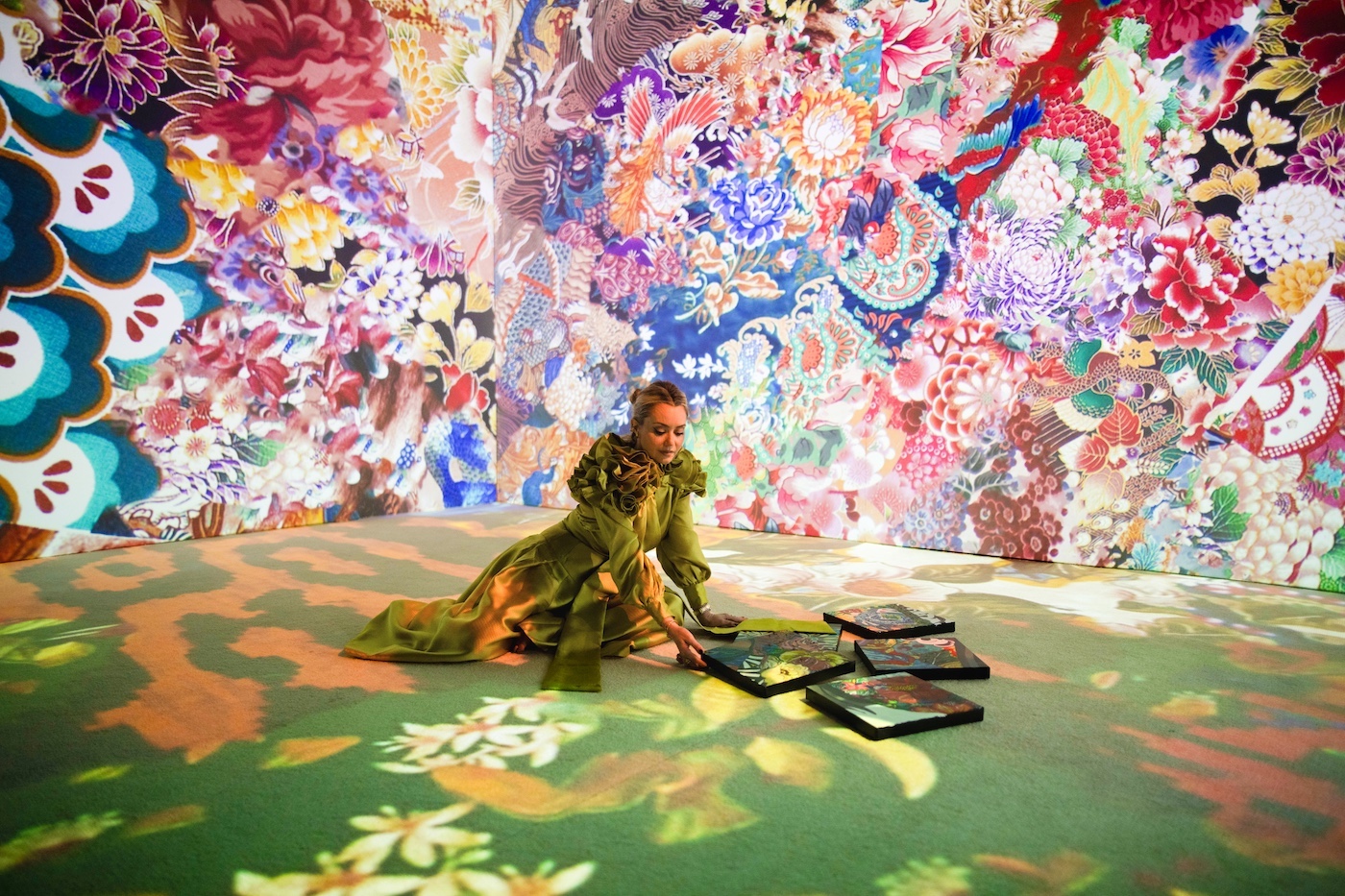 Her vibrant paintings were transformed into moving, projected works animated by motion designer Viktor Lukacs.