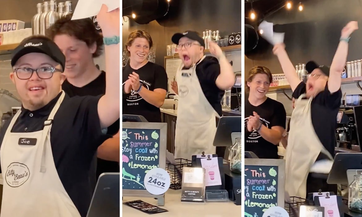 What's better than your first cup of coffee for the day? Maybe your first paycheck, or even the thrill of landing your first job. It's no wonder that a video of Joe Sullivan receiving his first paycheck and the infectious joy of his response has gone viral. Sullivan was born with Down syndrome and was hired by Bitty and Beau's Coffee Shop in Melrose, Massachusetts, this past summer.