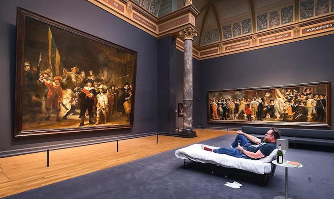 Have you ever wished you could have a private viewing of your favorite painting? One lucky man named Stefan Kasper in the Netherlands was granted that opportunity and more when he became the 1o millionth visitor to the Rijksmuseum in Amsterdam. He was granted his very own night at the museum, including a dinner and bed underneath Rembrandt‘s masterpiece The Night Watch. This incredible event occurred in 2017.