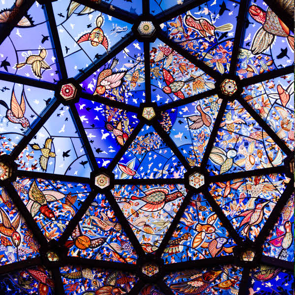 By day, the flowers in Bloom peek out with their vibrant petals, each delicately hand-painted and crafted to remind its viewer of nature’s beauty and the vital importance, as Durrell believed, of preserving it. At night, Semple’s flowers are equally vivid, emitting a soft haze thanks to the artist’s proprietary “Lit” glow-in-the-dark paint, which was applied as a finishing coat. Taken in its entirety, the surreal meadow is an organic and lively homage not only to Durrell’s environmentalist vision but to ecological responsibility, especially in the face of increasing climate catastrophe.