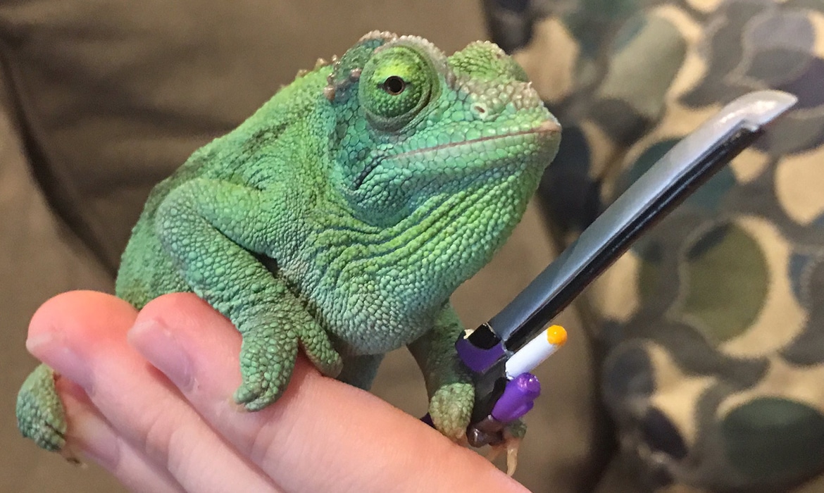Woman Discovers Her Pet Chameleon Will Hold Anything She Hands Her