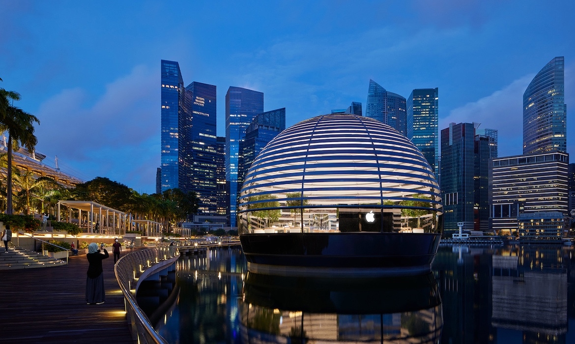Singapore’s Apple Store Is a Sleek Glass Bubble Floating in Marina Bay