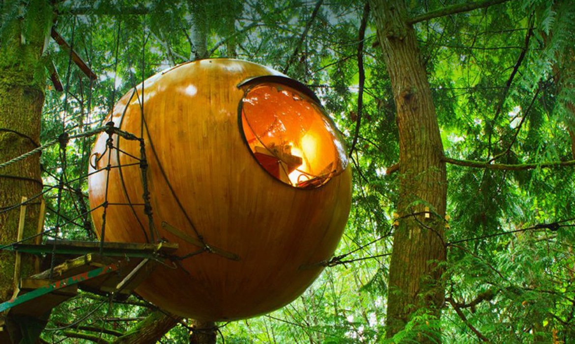 Ever dream of sleeping in a treehouse? Free Spirit Spheres, with their innovative, round treehouse cabins, may be just what you are looking for. Hovering 10 to 14 feet off the ground, these tree globes are tucked into the forest canopy of Vancouver Island. Free Spirit Spheres is the brainchild of Tom Chudleigh, who was inspired to build these round treehouses in the early 1990s.