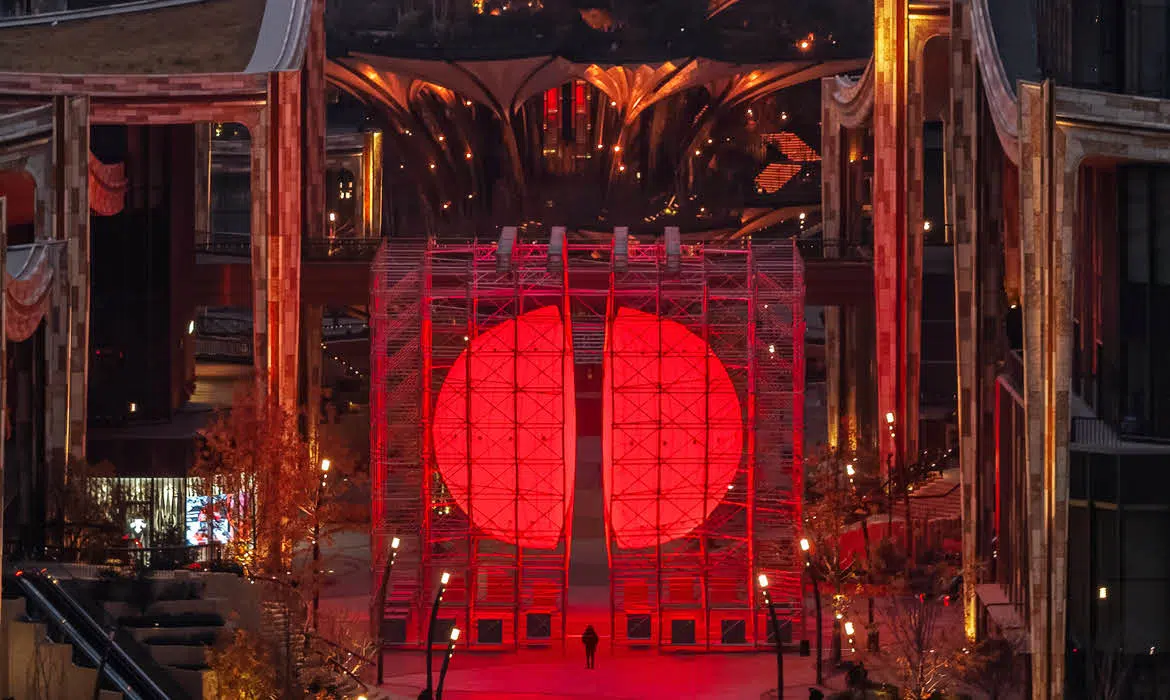 Giant Luminous Sphere Split in Half Dramatically Pops Up at a Vertical Park in China