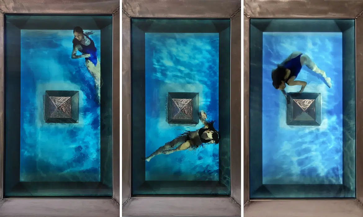All is not what it seems in sculptures by the artist known simply as Marck. In his alluring and enigmatic works, dimensions blur in a part-screen, part-tactile viewing experience. What happens on the screen in front of us directly influences the objects jutting from behind the frames that hold the large video screen, or vice versa. It’s a surreal sight as two seemingly disparate worlds influence one another in real time.