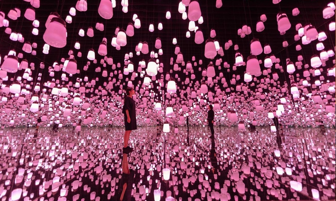 Japanese art and tech studio teamLab calls itself a collective that “explores a new relationship between humans and the world through art that transcends boundaries.” Known for its immersive installations that use technology to create responsive art, teamLab's newest piece plays on traditions while looking toward the future. Forest of Resonating Lamps – One Stroke, Cherry Blossoms is a new, spring-themed immersive experience on view as part of the teamLab Borderless digital art museum in Tokyo.