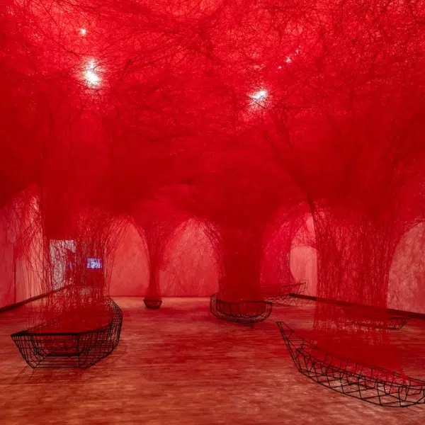 Massive Glowing Ovoid Cloaks City Streets in a Surreal Shade of Red