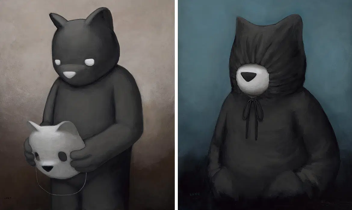 Anthropomorphic Bears and Bunnies Stand in for Humans in Paintings Commenting on Modern Life