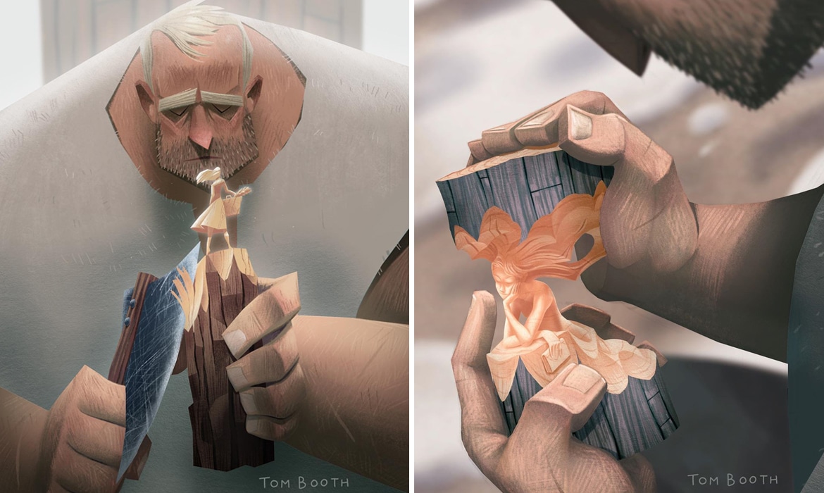 Illustrator Tom Booth creates images that tell stories. Whether it's in the form of a single picture or through a series of them, his tales excel in their character design as well as their ability to have his figures convey emotions ranging from joy to sorrow. Booth does this through a range of media, but some of his most compelling pieces are made with digital drawing and painting.