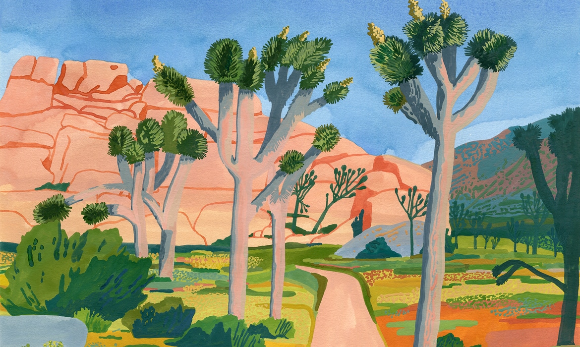 Ireland-based artist Therese O’Keeffe creates paintings that make it easy to enjoy a spring day no matter the time of year. Using a brush and palette knife, she applies thick pigment to the canvas and depicts colorful fields of flowers. In O’Keeffe’s world, the sky is always a perfect shade of blue and the blossoms are bountiful. They offer a visual respite—especially if you find yourself dreaming of escaping the office and frolicking among nature.