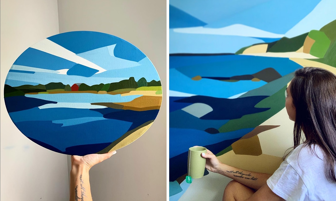 Massachusetts-based artist Rachael Cassiani creates abstract landscape paintings inspired by the sandy cliffs, shorelines, and blue skies of her local beaches. Each bold oil painting manages to capture the essential elements of the tranquil scenes with simplified shapes and vivid color. “I have always used art as a form of therapy,” admits Cassiani. “My process on each painting starts with a photo that I take while outside on trails, beaches, fields, etc.