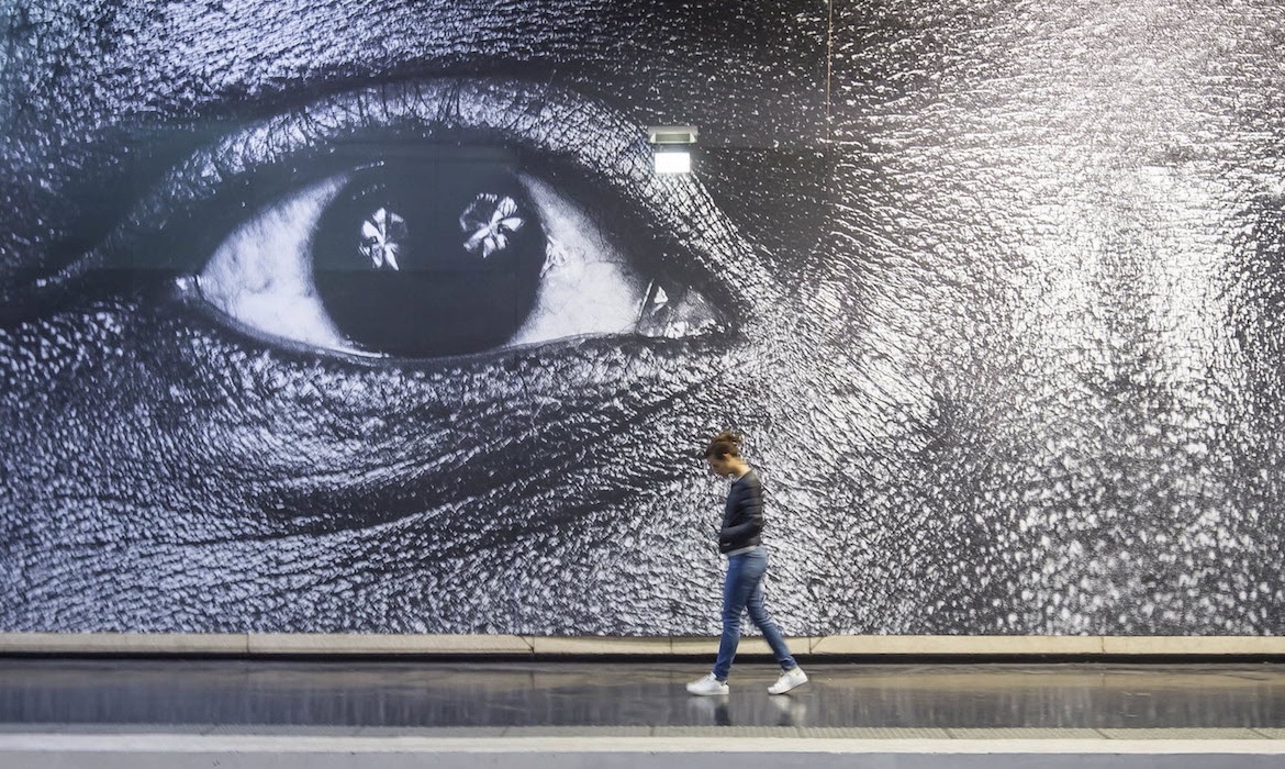 French photographer and street artist JR has taken over the Paris railways with his evocative artwork. Following in the footsteps of legendary photographers like Richard Avedon and Yann Arthus-Bertrand, JR's work flows through 11 metro and RER stations. As part of an ongoing project by the Paris transit operation RATP, the artist's giant poster art will pepper the network until February 2019.